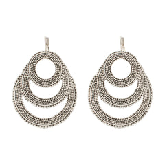 Bestelle jetzt unseren versilberten Ohrhänger mit drei runden Elementen und verleihe Deinem Look eine Prise Eleganz und Raffinesse.